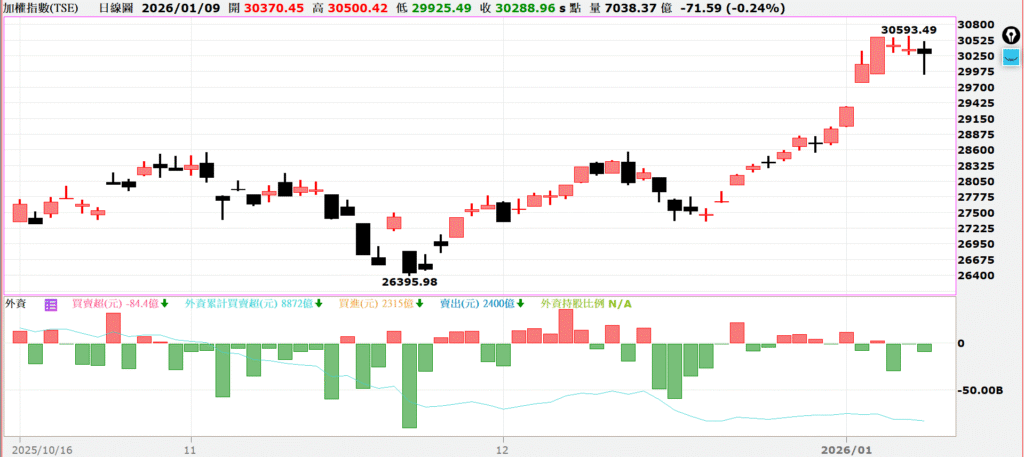 今天(1/9)指數回測3萬點關卡,也是奇蹟似的拉升站穩,