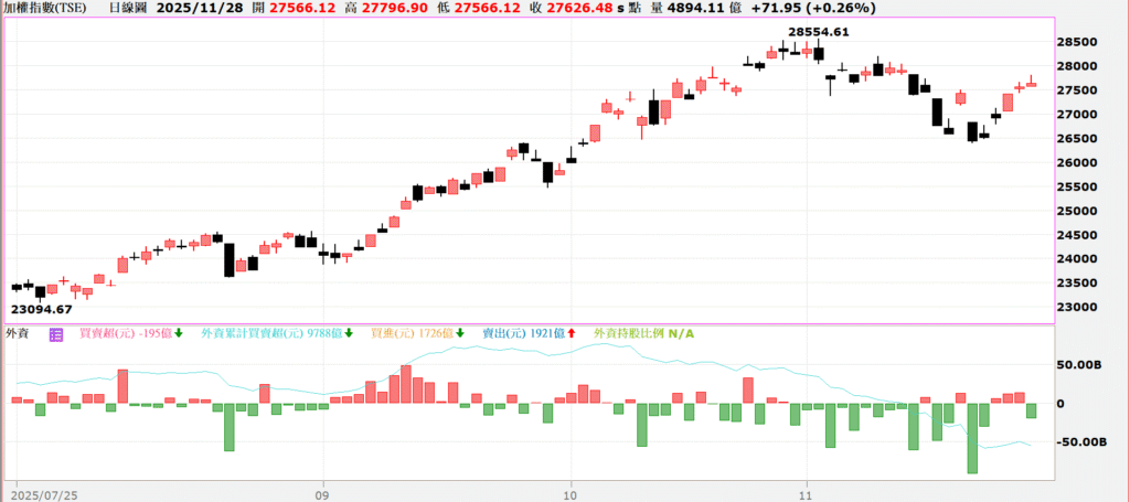 加權指數上週超強勢的上漲1191點,漲幅高達4.51%,